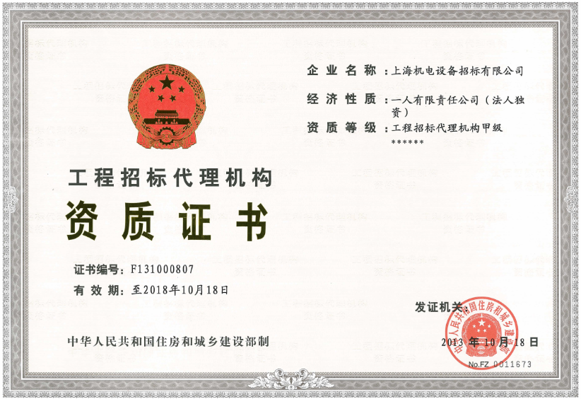 國家財政部授予的首批《政府采購代理機構甲級資格證書》,以及國家發(fā)改委授予的首批《中央投資項目招標代理機構甲級資格證書》。